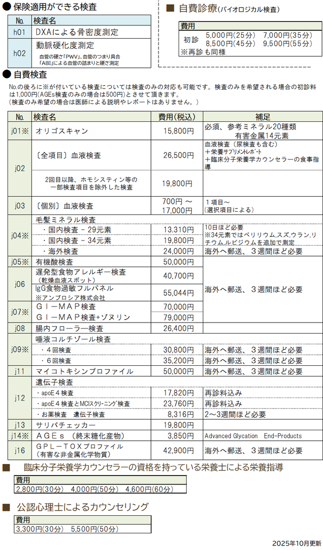 オーソモレキュラー外来受付